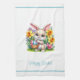This kitchen towel is shown in white with a festive Easter bunny print.