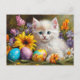 Easter Kitten with Flowers and Painted Eggs Holiday Postcard