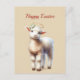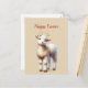 The image features an adorable white lamb with a soft, fluffy coat, standing gracefully. The lamb has a gentle, serene expression with bright eyes and perked ears. A golden halo floats above its head, symbolising purity and divinity. A small floral arrangement, including white blossoms and green leaves, adorns one side of its head, enhancing the peaceful and sacred feel.