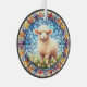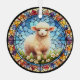 A beautiful stained glass Easter ornament of a cute lamb amongst the pretty colours.