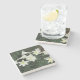 The coasters are gorgeous, a quality feel and heavy weight. They look like a precious archeological find. A rustic stone juxtaposed with a modern floral black and white print. I like the way the print goes slightly imperfect on the cut stone edges giving them a kind-of natural beauty.