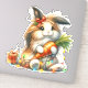 A giant sized Easter bunny with long hair and holding a carrot is ready to make your child smile at Easter.