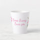 Fun Eater "Some bunny love you" coffee cup. Two hearts and an Easter bunny decorate this latte cup. Available in two sizes.