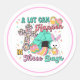This vibrant and playful round sticker features a unique Easter design with a leopard-print cross, a teal cave, and a cheerful bunny holding a colourful egg. Surrounding these elements are decorated Easter eggs, flowers, and tiny carrots, bringing the holiday to life. The bold text reads "A LOT CAN Happen IN Three Days," emphasizing the transformative power of Easter. Perfect for adding a touch of festive spirit to your envelopes or stickers!