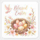 Delicate Easter illustration featuring a nest filled with decorated eggs surrounded by soft spring flowers and a peaceful dove. A gentle pastel design perfect for Easter gifts, seasonal decor, stickers, apparel, and greeting items. Ideal for anyone who loves cosy spring and Easter-themed artwork.