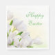 Easter paper napkins shown in the white luncheon size with a pretty white tulips print.