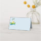 This folded name place card is shown in pastel blue with a festive Happy Easter chicks and egg print.