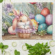 Easter Personalised Grandmother's Mother's Aunt's kitchen towel. Adorable custom Easter kitchen towel with a bunny in the basket. Cute towel to use while cooking on Easter Sunday.