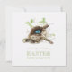 Customisable Easter party invitation for picnics, spring family reunion, egg hunt parties or other outdoor activities, featuring a bird nest with eggs illustration.