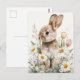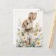 Easter Postcard with Flowers and Easter Bunny