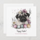 Easter pug cute rustic watercolor floral card