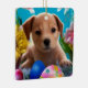 Easter Puppy Flowers and Eggs Holiday Ceramic Ornament