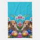 Easter Puppy Flowers and Eggs Tea Towel