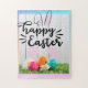 beautiful Easter or everyday puzzle with flowers and eggs. A fence with different color boarder