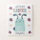 Easter puzzle for children, with flowers and a cute cartoon bunny. The caption reads Happy Easter.