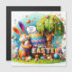 Once upon a time, in a magical land, there lived an Abstract Easter Bunny. He hopped around with a funky abstrac trees with rainbow colours, bringing joy and wonder to all the children. One sunny Easter morning, he joined a group of children on an egg hunt. "Hello, my little friends!" he exclaimed, "Let's find some colourful eggs together!" The children giggled with excitement as they followed the bunny's lead. They searched high and low, under bushes and behind trees, until they found all the hidden eggs.