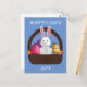 Colourful Easter bunny, basket, & coloured eggs postcard with personalised name for kids.