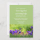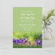 Personalise this Easter invitation with your text. Choose a font and the colour of the text that would complement your holiday party. This lovely Easter invitation features a spring green background with purple irises and bunny rabbits below the text.