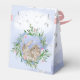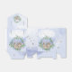 Favour box. Easter bunnies on a cloud with silver stars. The colour of the ribbon can be changed, choice of white, black and purple.