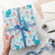 A Pretty Blue Pattern Of Easter Bunnies and Spring Flowers