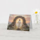 An awesome serene and inspiring AI generated image of the risen Jesus stepping forward from a circular stone tomb at dawn showing that the stone entrance was moved. Warm golden light radiates behind Him, forming a glowing halo effect through the archway. His hands are open in a gesture of peace and welcome, while white doves soar in the soft pastel sky. Colorful spring flowers bloom at His feet, and gentle rays of sunlight symbolize resurrection, hope, and new beginnings—perfect for a personalized Easter greeting card.