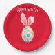 "HAPPY EASTER" PAPER PLATES WITH BUNNY EARS & SPECKLED EGG.
