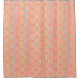 This shower curtain has an Easter design of split circles on lines in green, blue, and purple on a field of orange.