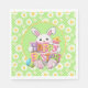 A Green Spring Paper Napkin Filled With Daisies And A Cute Bunny With A Colourful Happy Easter