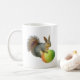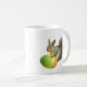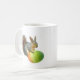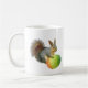 A cute squirrel with bunny ears holds a colourful egg on this cute Easter mug.
