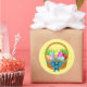 Easter holiday sticker shown with a festive Easter basket print.