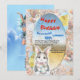 I chose the larger postcard sized one, as the font would be large for older eyes, and customised it keeping the Rail Ticket theme on the front, with venue address/date/time of party, and on the back I added another steam train and various 80 speed limit/rail signages. The trick is not to overdo it or it looks too busy. I also added at one end of the front side, a word of thanks from the birthday boy.