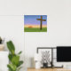 A poster of a beautiful, digitally painted image of an empty cross at sunrise. Perfect for Easter, springtime, or any time of year!