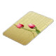 Noble gold parchment with "Happy Easter" Typography and 2 pink tulips.