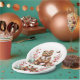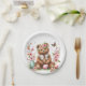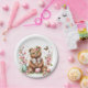 Easter Paper plates featuring a brown bear with flowers and chocolate eggs. Customisable.