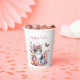 Easter paper cups featuring a Kitten with cherry blossoms and Easter eggs. Customisable.