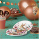 Paper plates featuring a rabbit with flowers and Easter eggs. Customisable.