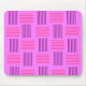 This mouse pad has a mid-century modern design that looks like a weave with purple and pink lines on a field of lighter purple.