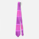 This tie has a mid-century modern design that looks like a weave with purple and pink lines on a field of lighter purple.