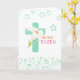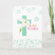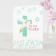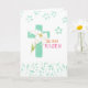 White lily Easter cross with floral pattern proclaims the words, "HE HAS RISEN." This design elegantly shares the true, simply message of Easter. Beautiful jade colour and bright magenta font inside creates this special greeting.