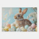 Easter design, white rabbit, decorated egg, pastel Easter eggs, floral patterns, whimsical scene, enchanting Easter image, vibrant colours, symbolic Easter elements, festive atmosphere, magical Easter design, springtime decorations, holiday celebration.