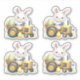 A sheet of 4 yellow rabbits driving a yellow tractor hauling Easter eggs to add to your kids Easter gift packages
