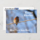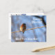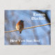 The Eastern Bluebird, State Bird of both New York and Missouri, is featured on this photographic postcard. Downy with its winter plumage perched on a wire, this little song bird is highlighted by morning sunlight. The Bluebird is a symbol of Joy and Hope and is believed to be a messenger of Good News.