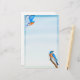 Original fine art design of male Eastern bluebirds by avian artist Carolyn McFann printed on quality stationery for bluebird and wild bird fans.