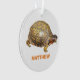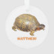 Create the perfect personalised holiday gift for fans of turtles when you add a name to this Christmas ornament. The ornament features a photo of an eastern box turtle, and is ready to be personalised with a name or other text below in bold orange lettering. The photo and text appear on both sides of this ornament.