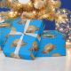 This gift wrap is perfect for wrapping up gifts for fans of turtles. The wrapping paper features photos of eastern box turtles set against a bright blue patterned background.
