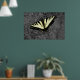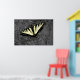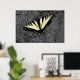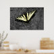 A photograph of a Eastern Tiger Swallowtail butterfly at rest on a wet sandy beach.