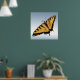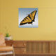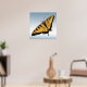This fine art photography poster features the male Eastern Tiger Swallowtail (Papilio glaucus), a species of butterfly native to North America who flies from spring to fall, and produces two to three broods. Adults feed on the nectar of many species of flowers. He is yellow with four black tiger stripes on each fore wing. He is set on a sky blue background.