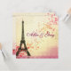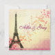 Colourful French Eiffel tower invitation template with hearts floating in the background. Can easily be edited for any French themed party invitation.