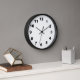 Easy read, high contrast, large numbers clock in simple black and white with no decorative elements. Perfect for senior citizens or visually challenged. Add your business name or logo for use in an office.