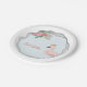 Cute paper plates with an illustration of a pink baby swan with a crown and some floral details in the left corner. The image looks like it's in three dimensions but it's just a print. Illustrated and designed by Patricia Alvarez.